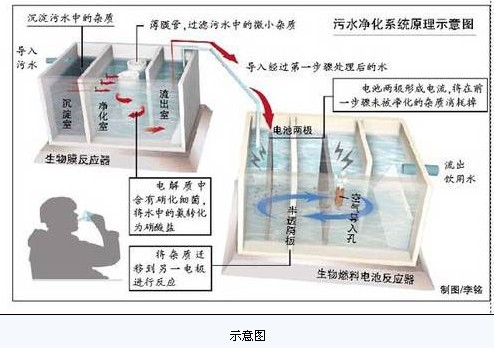 胡志強說,這套凈水系統(tǒng)分為兩個部分,一個是生物膜反應(yīng)器,另一個是微生物燃料電池。這兩個組件可以過濾水中細微雜質(zhì),使污水達到飲用水標(biāo)準。